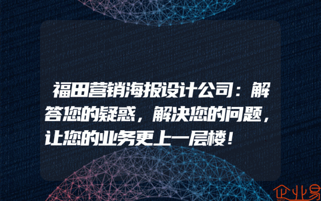 - 福田营销海报设计公司:解答您的疑惑,解决您的问题,让您的业务更上一层楼!