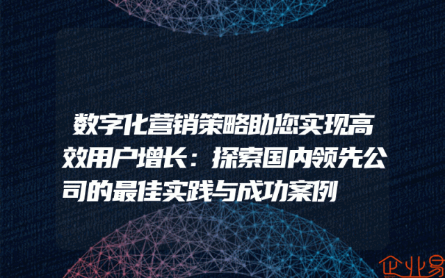 - 数字化营销策略助您实现高效用户增长:探索国内领先公司的最佳实践与成功案例