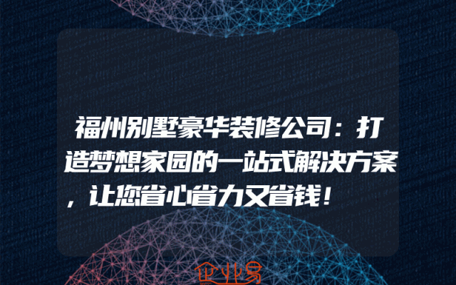 - 福州别墅豪华装修公司:打造梦想家园的一站式解决方案,让您省心省力又省钱!