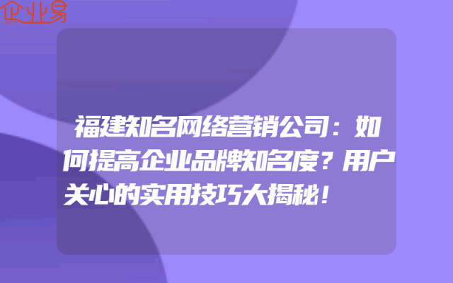 - 福建知名网络营销公司:如何提高企业品牌知名度?用户关心的实用技巧大揭秘!