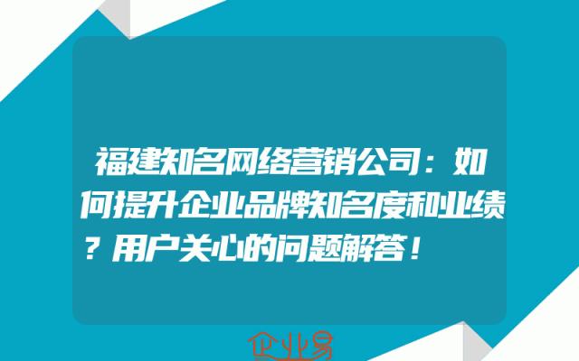 - 福建知名网络营销公司:如何提升企业品牌知名度和业绩?用户关心的问题解答!