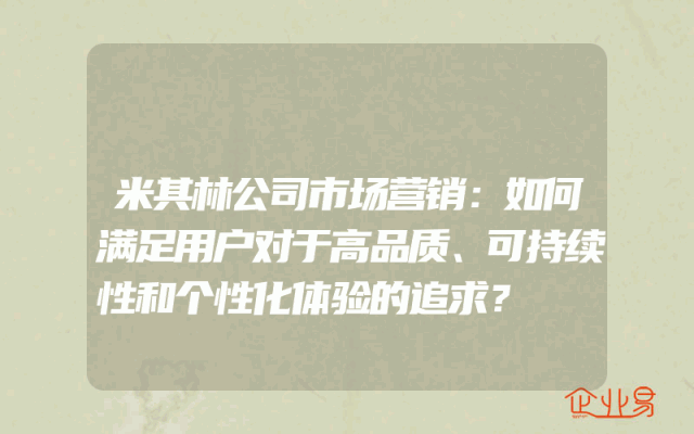 - 米其林公司市场营销:如何满足用户对于高品质、可持续性和个性化体验的追求?
