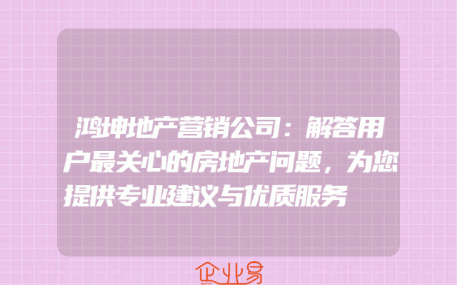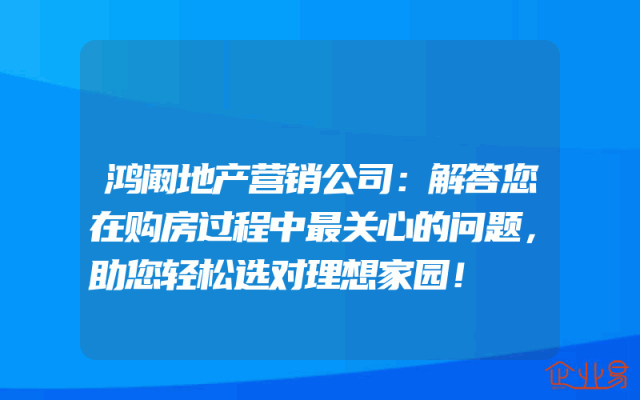 - 鸿阚地产营销公司:解答您在购房过程中最关心的问题,助您轻松选对理想家园!