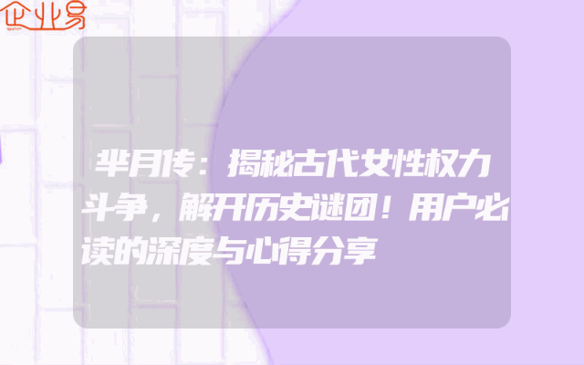 - 芈月传:揭秘古代女性权力斗争,解开历史谜团!用户必读的深度与心得分享