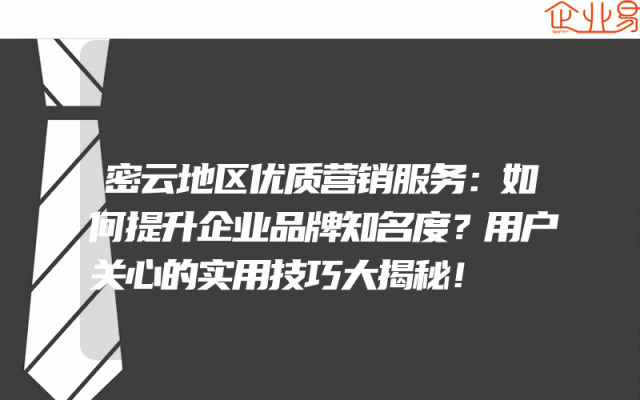 - 密云地区优质营销服务:如何提升企业品牌知名度?用户关心的实用技巧大揭秘!