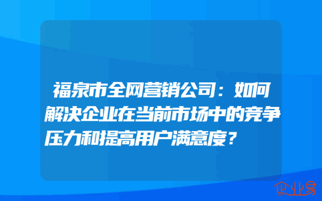 - 福泉市全网营销公司:如何解决企业在当前市场中的竞争压力和提高用户满意度?