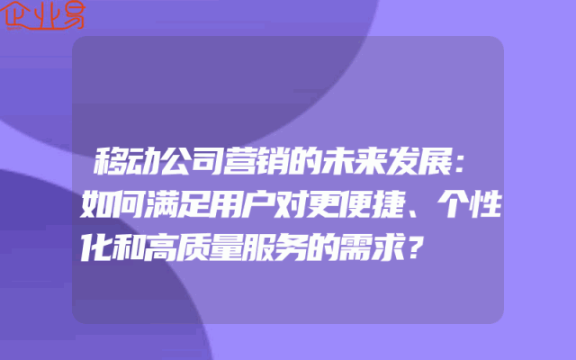 - 移动公司营销的未来发展:如何满足用户对更便捷、个性化和高质量服务的需求?
