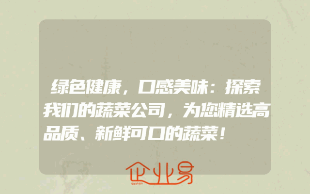 - 绿色健康,口感美味:探索我们的蔬菜公司,为您精选高品质、新鲜可口的蔬菜!