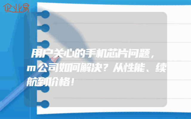 - 用户关心的手机芯片问题,m公司如何解决?——从性能、续航到价格一网打尽!在当今的智能手机市场中,手机芯片作为手机的核心部件,对手机的性能、续航和价格等方面都有着至关重要的影响。那么,面对用户关注的手机芯片问题,m公司是如何解决的呢?本文将从
