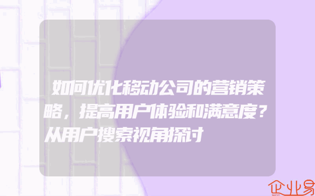 - 如何优化移动公司的营销策略,提高用户体验和满意度?从用户搜索视角探讨