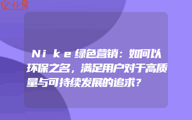 - Nike绿色营销:如何以环保之名,满足用户对于高质量与可持续发展的追求?随着全球环境问题的日益严重,越来越多的企业开始关注环保问题,并将其融入到自身的经营策略中。作为全球领先的运动品牌,Nike也不例外。本文将探讨Nike如何通过绿色营销策