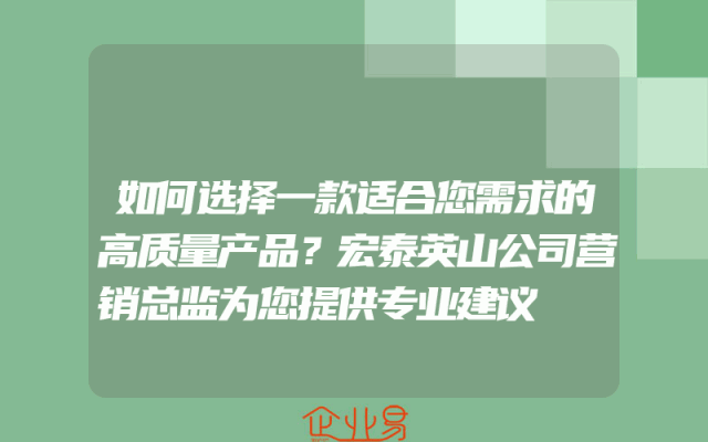 - 如何选择一款适合您需求的高质量产品?宏泰英山公司营销总监为您提供专业建议