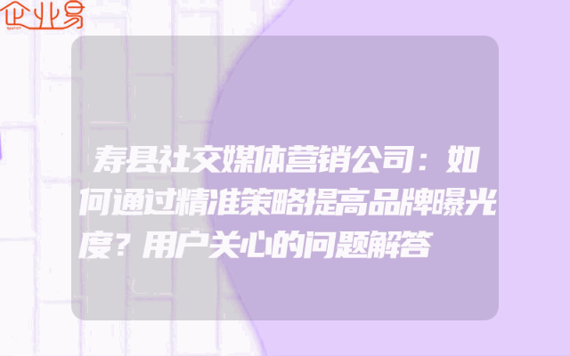 - 寿县社交媒体营销公司:如何通过精准策略提高品牌曝光度?用户关心的问题解答