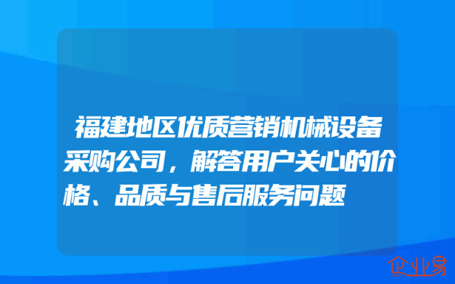 - 福建地区优质营销机械设备采购公司,解答用户关心的价格、品质与售后服务问题在当今竞争激烈的市场环境下,企业需要选择一家优质的营销机械设备采购公司来提供高质量的产品和服务。福建地区的许多企业都在寻找这样的合作伙伴,以满足他们的需求并确保业务的成