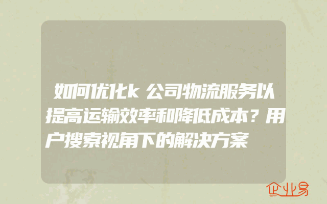 - 如何优化k公司物流服务以提高运输效率和降低成本?用户搜索视角下的解决方案