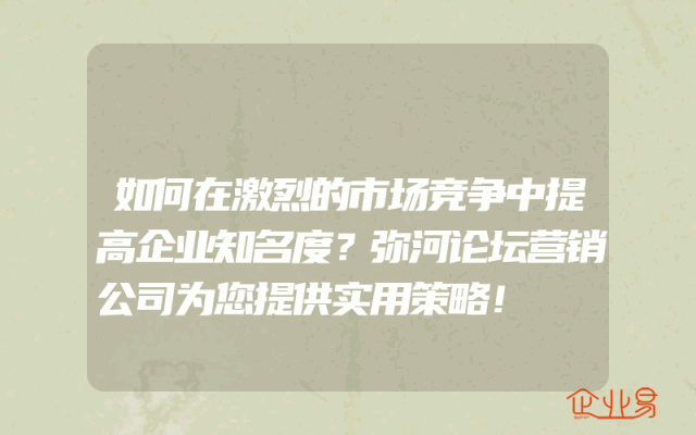 - 如何在激烈的市场竞争中提高企业知名度?弥河论坛营销公司为您提供实用策略!