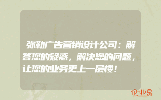 - 弥勒广告营销设计公司:解答您的疑惑,解决您的问题,让您的业务更上一层楼!