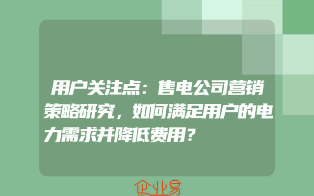 - 用户关注点:售电公司营销策略研究,如何满足用户的电力需求并降低费用?