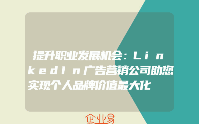 - 提升职业发展机会:LinkedIn广告营销公司助您实现个人品牌价值最大化在当今竞争激烈的职场环境中,提升个人职业发展机会是每个职场人士的追求。为了实现这一目标,许多人开始关注个人品牌的建设。在这个过程中,LinkedIn作为一个全球领先的职