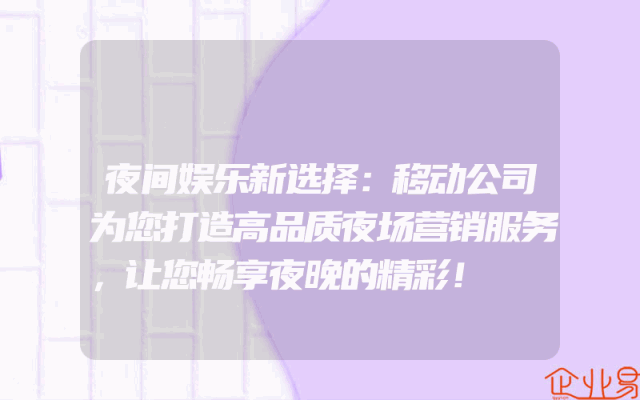 - 夜间娱乐新选择:移动公司为您打造高品质夜场营销服务,让您畅享夜晚的精彩!