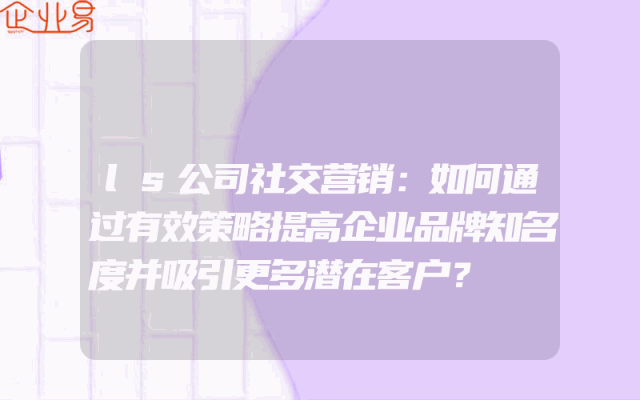 - ls公司社交营销:如何通过有效策略提高企业品牌知名度并吸引更多潜在客户?