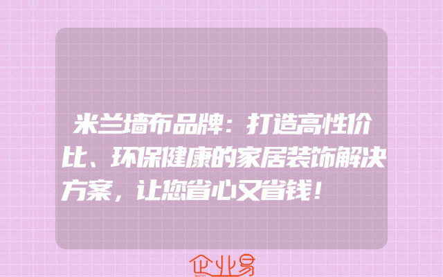 - 米兰墙布品牌:打造高性价比、环保健康的家居装饰解决方案,让您省心又省钱!