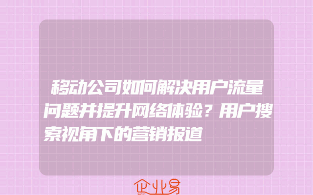 - 移动公司如何解决用户流量问题并提升网络体验?用户搜索视角下的营销报道