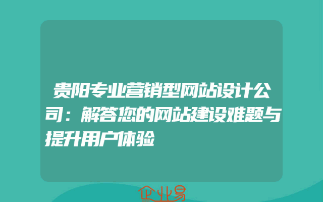 - 贵阳专业营销型网站设计公司:解答您的网站建设难题与提升用户体验