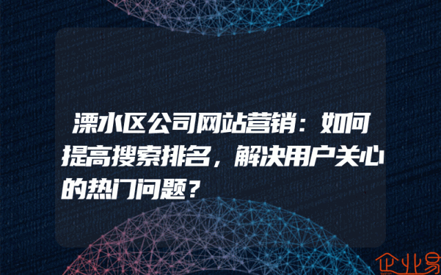 - 溧水区公司网站营销:如何提高搜索排名,解决用户关心的热门问题?