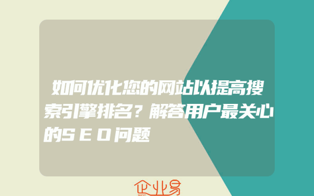 - 如何优化您的网站以提高搜索引擎排名?解答用户最关心的SEO问题