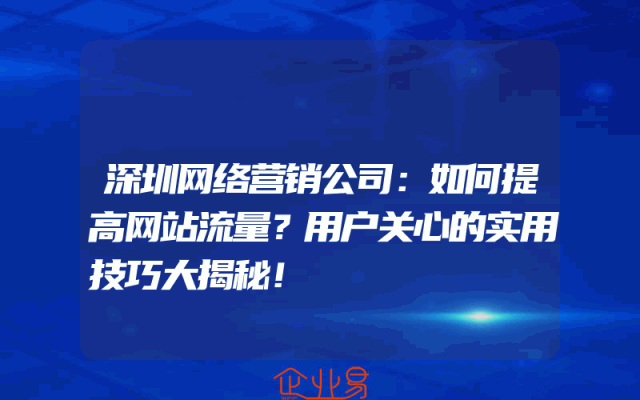 - 深圳网络营销公司:如何提高网站流量?用户关心的实用技巧大揭秘!