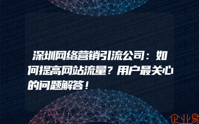 - 深圳网络营销引流公司:如何提高网站流量?用户最关心的问题解答!