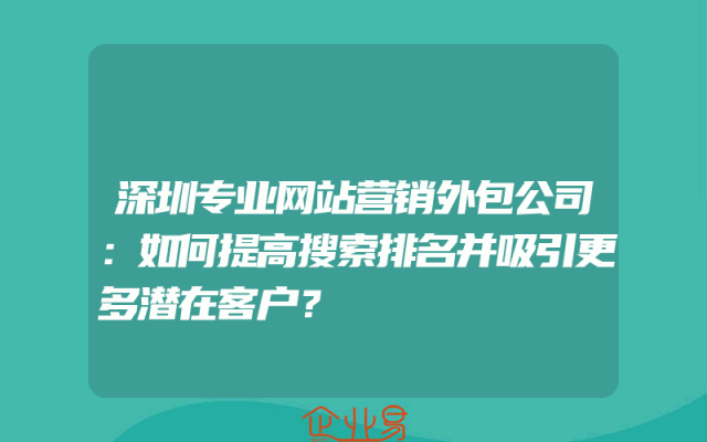 - 深圳专业网站营销外包公司:如何提高搜索排名并吸引更多潜在客户?