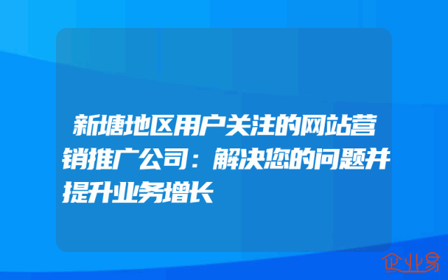 - 新塘地区用户关注的网站营销推广公司:解决您的问题并提升业务增长