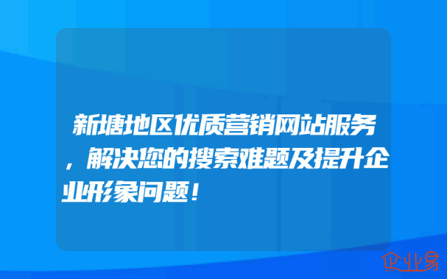 - 新塘地区优质营销网站服务,解决您的搜索难题及提升企业形象问题!在当今数字化时代,一个优质的营销网站对于企业的运营至关重要。特别是在新塘地区,市场竞争日益激烈,企业需要通过各种方式来吸引潜在客户并提升企业形象。本文将介绍一种有效的解决方案——