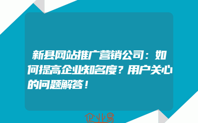- 新县网站推广营销公司:如何提高企业知名度?用户关心的问题解答!