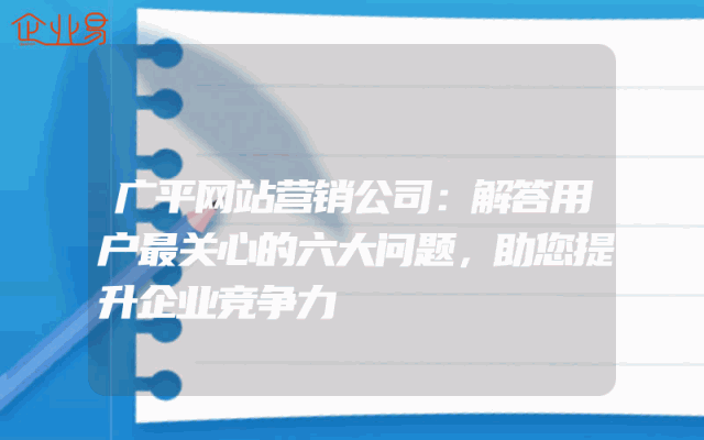 - 广平网站营销公司:解答用户最关心的六大问题,助您提升企业竞争力