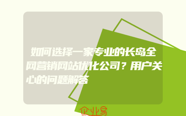 - 如何选择一家专业的长岛全网营销网站优化公司?用户关心的问题解答