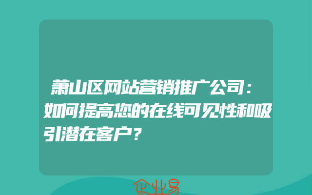 - 萧山区网站营销推广公司:如何提高您的在线可见性和吸引潜在客户?