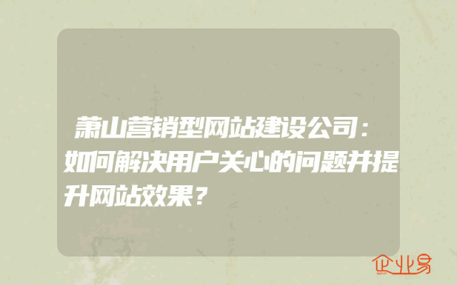 - 萧山营销型网站建设公司:如何解决用户关心的问题并提升网站效果?