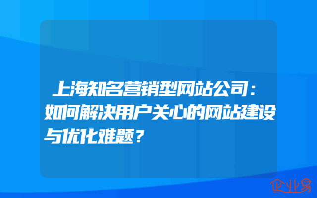 - 上海知名营销型网站公司:如何解决用户关心的网站建设与优化难题?