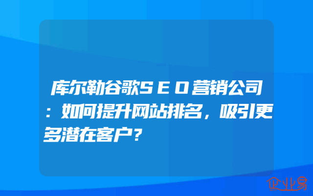- 库尔勒谷歌SEO营销公司:如何提升网站排名,吸引更多潜在客户?