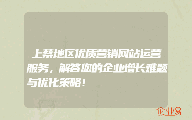 - 上蔡地区优质营销网站运营服务,解答您的企业增长难题与优化策略!
