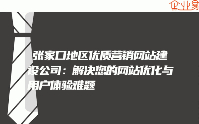 - 张家口地区优质营销网站建设公司:解决您的网站优化与用户体验难题