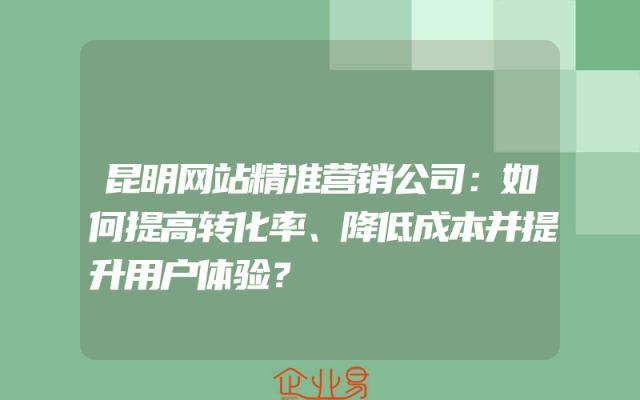 - 昆明网站精准营销公司:如何提高转化率、降低成本并提升用户体验?