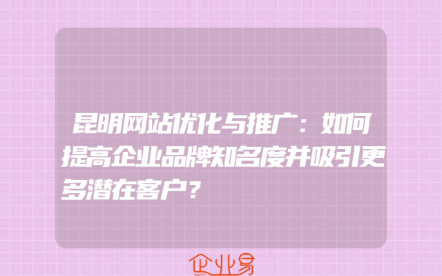 - 昆明网站优化与推广:如何提高企业品牌知名度并吸引更多潜在客户?