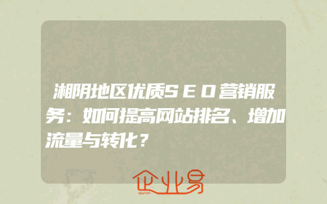 - 湘阴地区优质SEO营销服务:如何提高网站排名、增加流量与转化?