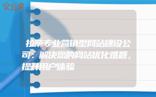 - 拉萨专业营销型网站建设公司:解决您的网站优化难题,提升用户体验