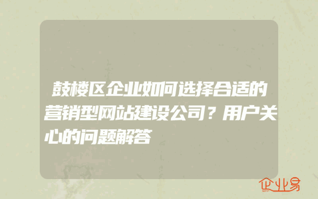 - 鼓楼区企业如何选择合适的营销型网站建设公司?用户关心的问题解答