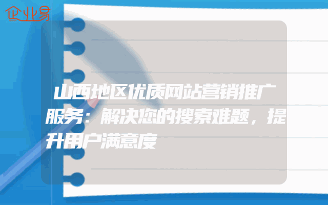 - 山西地区优质网站营销推广服务:解决您的搜索难题,提升用户满意度